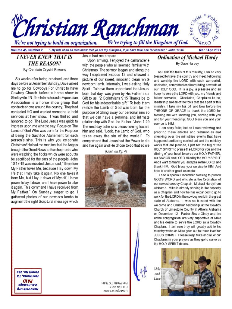 E h Christian Ranch man We\'re not trying to build an organization. Volume 45, Number 2We\'re trying to fill the Kingdom with God.\”. By this shall all men know that ye are my disciples, if ye have