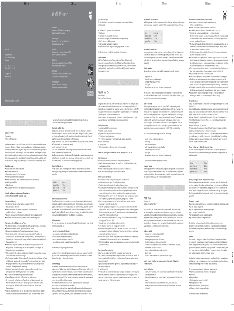 120 mm120 mm117 mm117 mm113 mmWMF Pfanne WMF Pfanne Aluminium mit Teflon Antihaftversiegelung Bedienungs und Pflegehinweise WMF Frying Pan Aluminium with Teflon nonstick coating Instructions for use