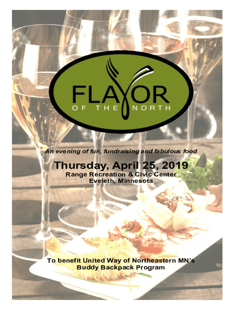 An evening of fun, fundraising and fabulous foodThursday, April 25, 2019 Range Recreation & Civic Center Eveleth, MinnesotaTo benefit United Way of Northeastern MNs Buddy Backpack ProgramSILENT AND