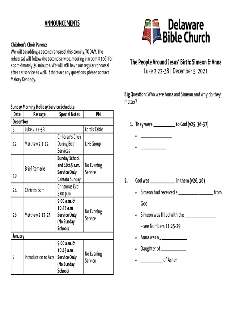 Fill out your quotsecond servicequot choir rehearsal online with pdfFiller!