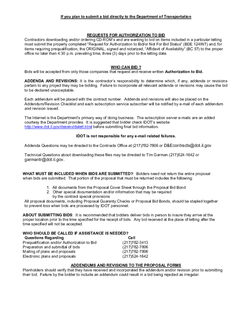 If you plan to submit a bid directly to the Department of TransportationREQUESTS FOR AUTHORIZATION TO BID