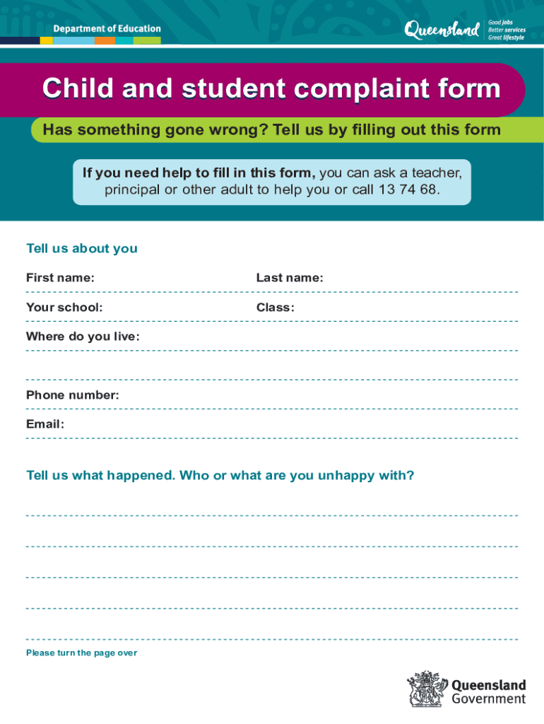 Get the free Child and student complaint form - Department of Education - woodridgeshs eq edu