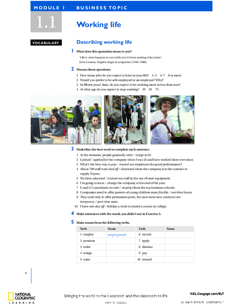 MODULE 1B U S I N E S TO P I C1.1Working life