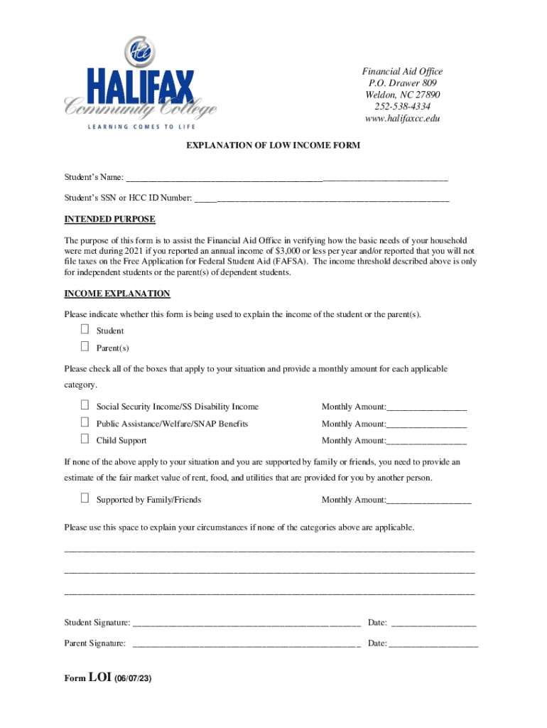EXPLANATION OF LOW INCOME FORM