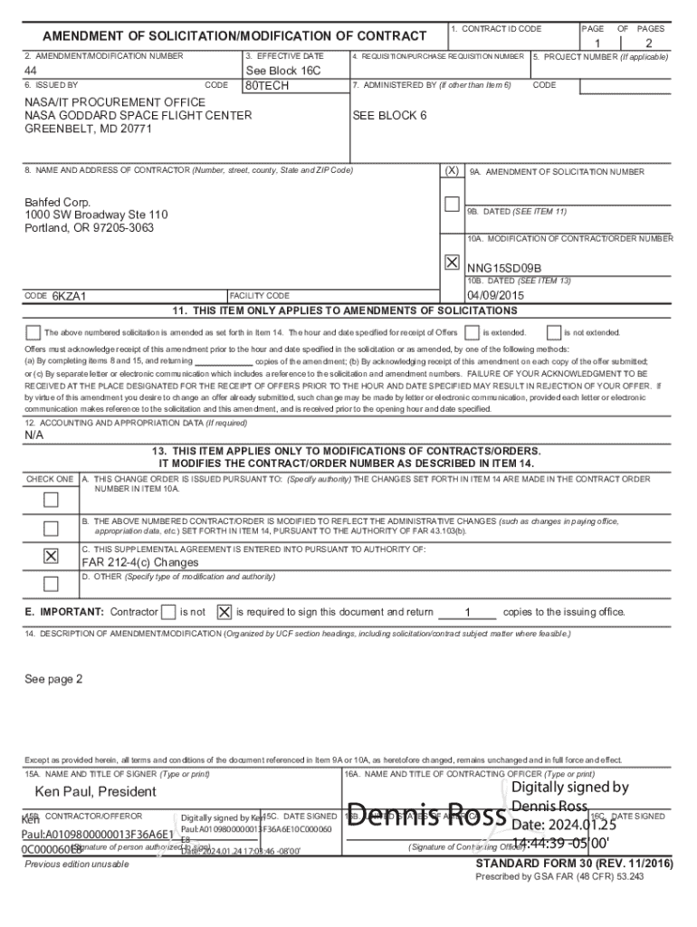 AMENDMENT OF SOLICITATION/MODIFICATION OF CONTRACT 2. AMENDMENT/MODIFICATION NUMBER44 6. ISSUED BYCODE1. CONTRACT ID CODEPAGEOFPAGES123. EFFECTIVE DATE4. REQUISITION/PURCHASE REQUISITION NUMBER5.