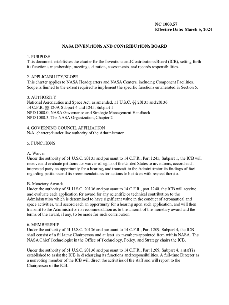 This document establishes the charter for the Inventions and Contributions Board (ICB), setting forth