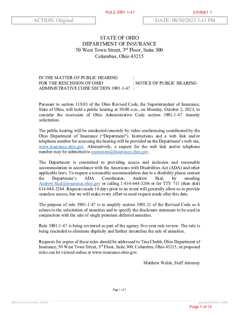RULE 3901147ACTION: OriginalEXHIBIT 1DATE: 08/30/2023 3:41 STATE OF OHIO