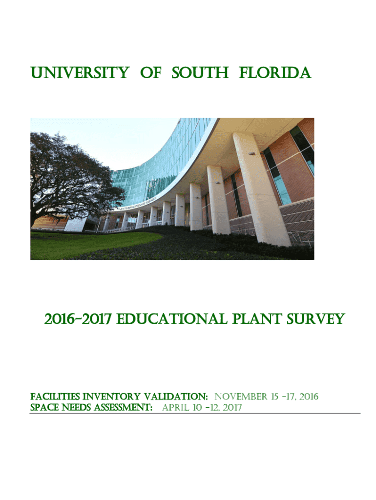 UNIVERSITY OF SOUTH FLORIDA20162017 Educational Plant SurveyFacilities Inventory Validation: November 15 17, 2016