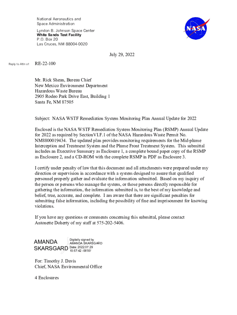 Get the free NASA WSTF Remediation System Monitoring Plan Annual ...