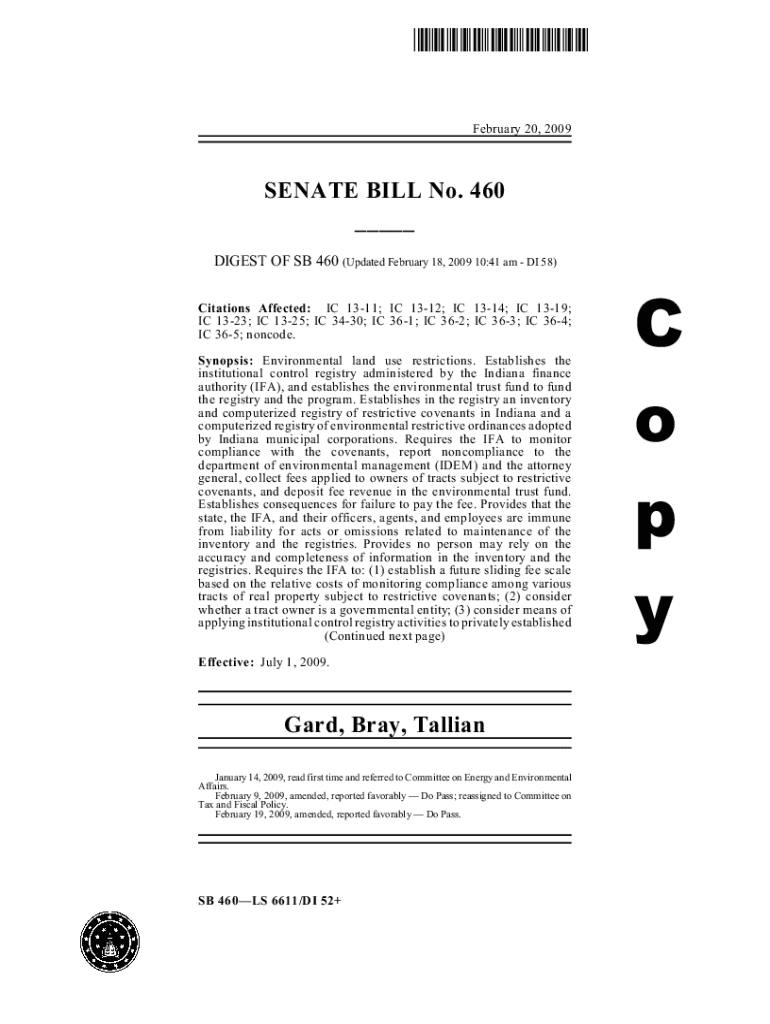*SB0460.2* February 20, 2009SENATE BILL No. 460 ___ DIGEST OF SB 460 (Updated February 18, 2009 10:41 am DI 58) Citations Affected: IC 1311; IC 1312; IC 1314; IC 1319; IC 1323; IC 1325; IC 3430; IC