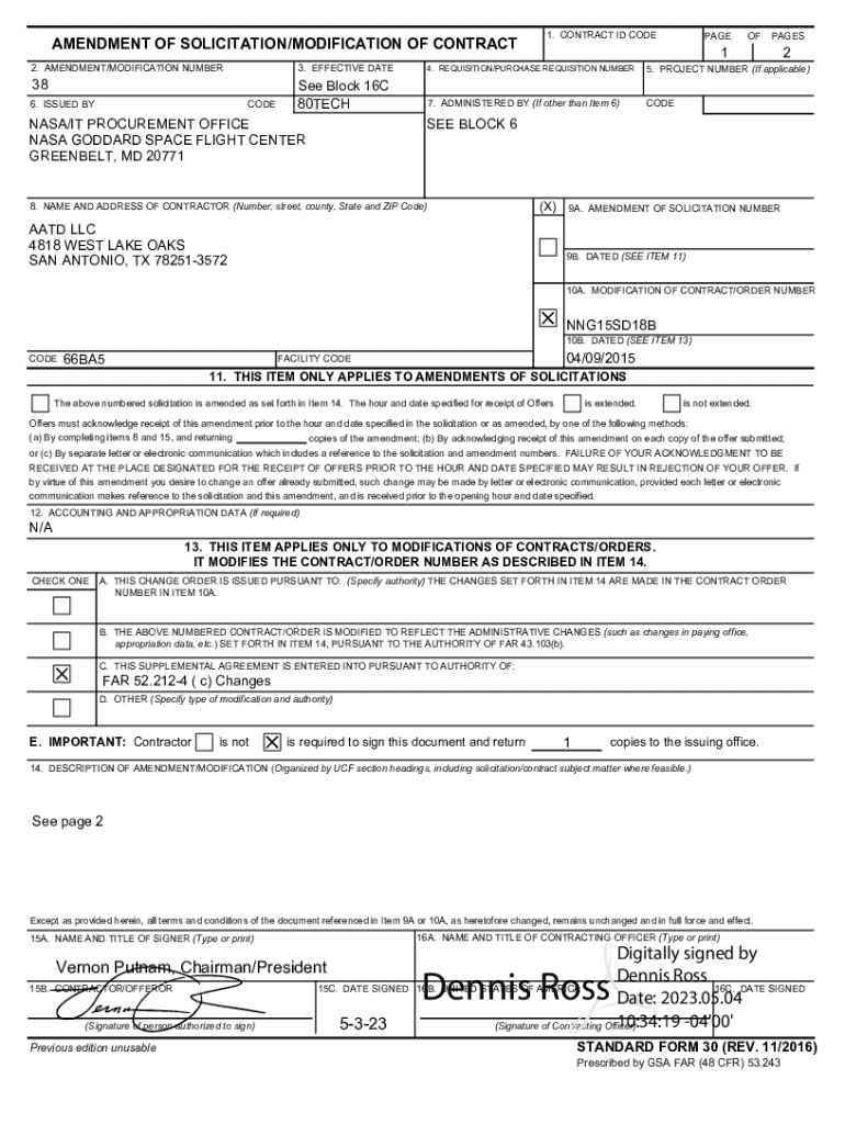 AMENDMENT OF SOLICITATION/MODIFICATION OF CONTRACT 2. AMENDMENT/MODIFICATION NUMBER38 6. ISSUED BYCODE1. CONTRACT ID CODEPAGEOFPAGES123. EFFECTIVE DATE4. REQUISITION/PURCHASE REQUISITION NUMBER5.