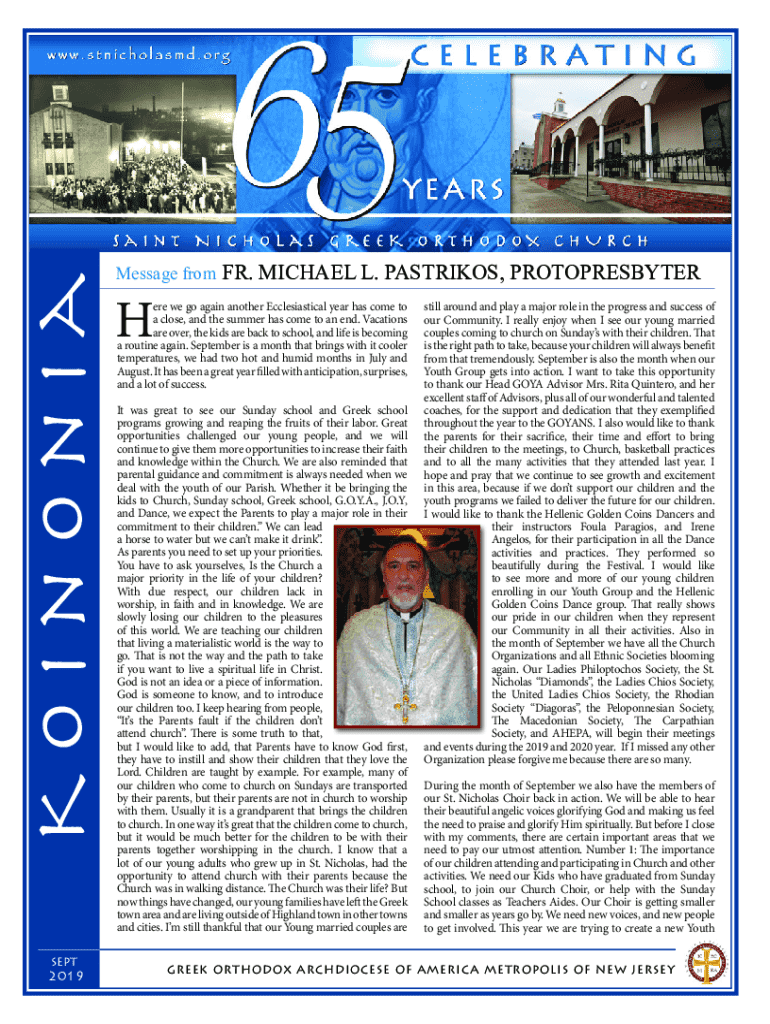 SEPT2019Message from FR. MICHAEL L. PASTRIES, PROTOPRESBYTERHere we go again another Ecclesiastical year has come to