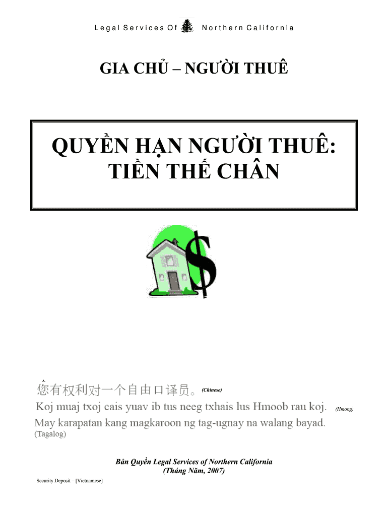 Legal Services Of Northern California GIA CH? NG?? I THU BUY? N H? N NG?? I THU : TI? N TH? CH N (Chinese) (Hmong) B?n Buy?n Legal Services of Northern California (The NG N?m, 2007) Security Deposit