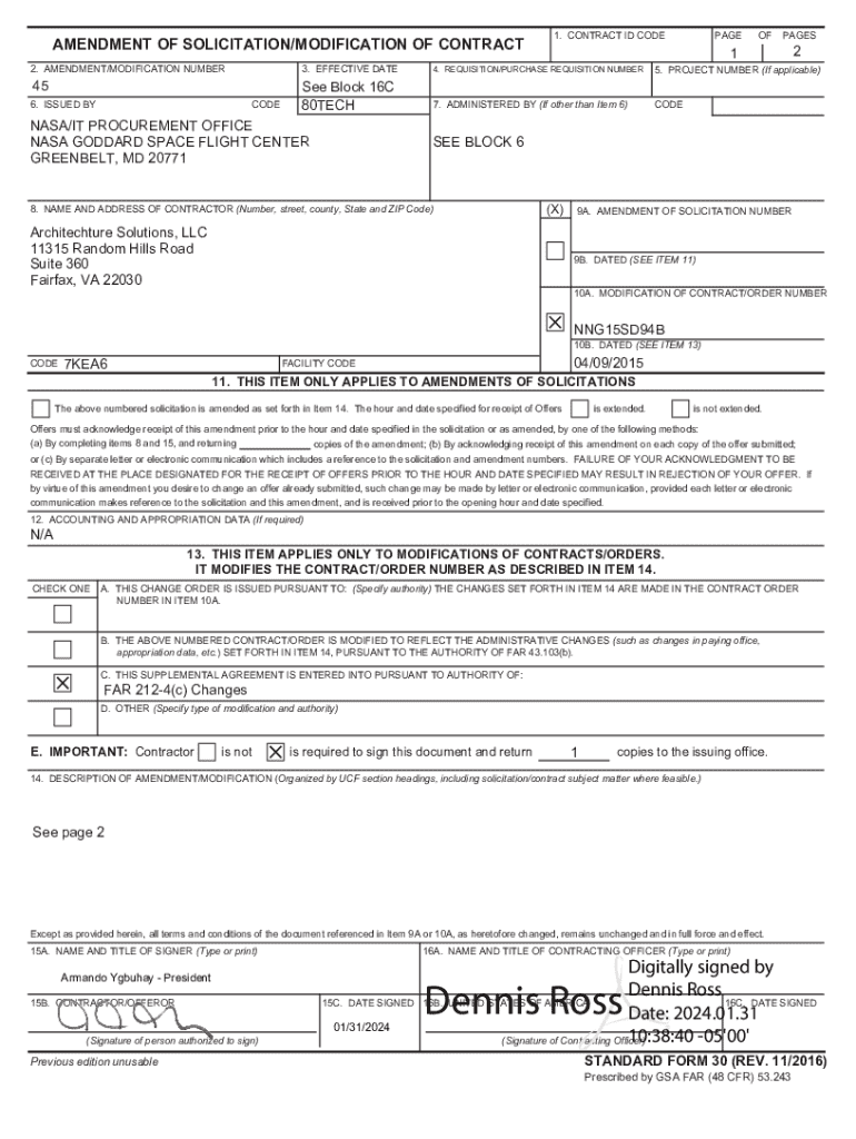 AMENDMENT OF SOLICITATION/MODIFICATION OF CONTRACT 2. AMENDMENT/MODIFICATION NUMBER45 6. ISSUED BYCODE1. CONTRACT ID CODEPAGEOFPAGES123. EFFECTIVE DATE4. REQUISITION/PURCHASE REQUISITION NUMBER5.