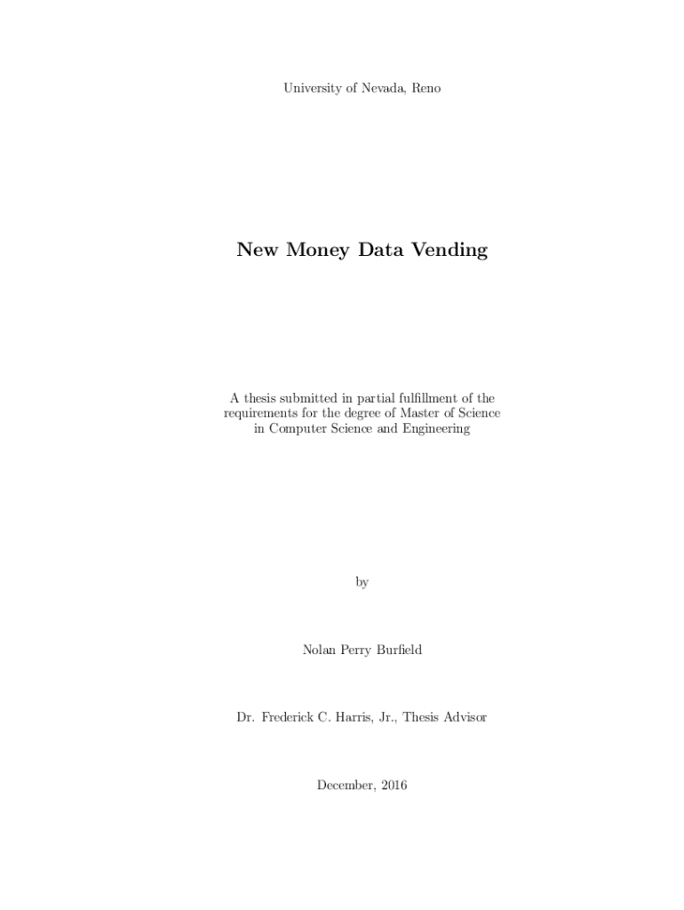 University of Nevada, Renowned Money Data Vending thesis submitted in partial fulfillment of the requirements for the degree of Master of Science in Computer Science and EngineeringbyNolan Perry Outfielder.