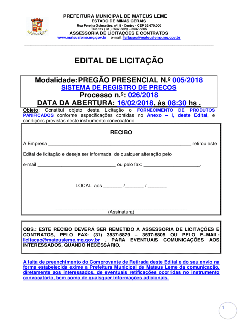 PREFEITURA MUNICIPAL DE MATEUS LEME ESTADO DE MINAS GERAIS Rua Pereira Guimares, n. 8 Centro CEP 35.670.000 Tele fax ( 31 ) 3537.5829 35375805ASSESSORIA DE LICITAES E CONTRATOS www.mateusleme.mg.gov.bremail: