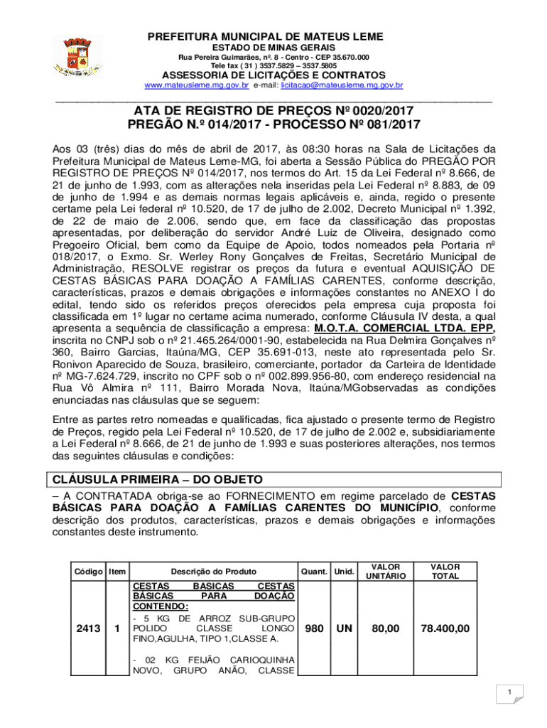 Obtenha o gratuito Aos 03 (trs) dias do ms de abril de 2017, s 08:30 horas na Sala de Licitaes da