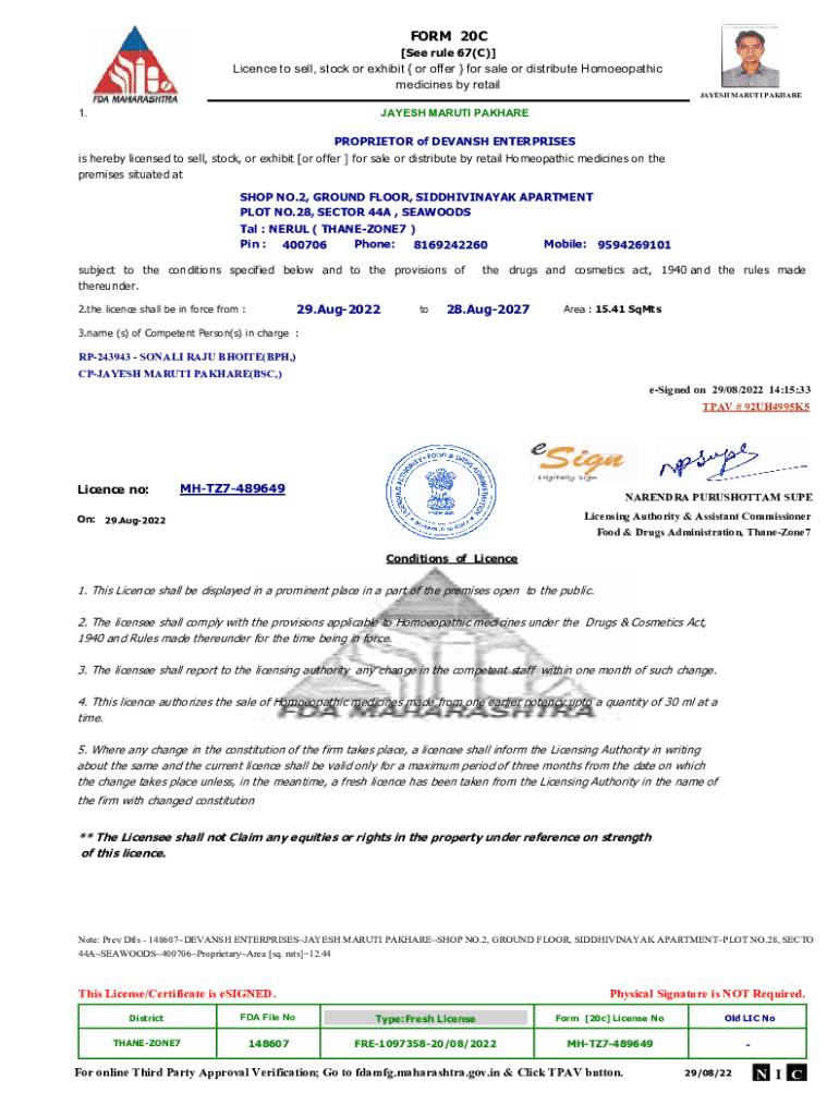 [See rule 67(C)]License to sell, stock or exhibit or offer for sale or distribute Homeopathic