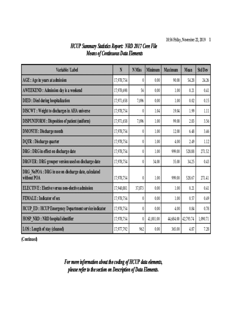 Variable / Label MissMinimum18:56 Friday, November 22, 2019MaximumMeanStd Dégagé : Age in years at admission17,978,75400.0090.0054.2824.26AWEEKEND