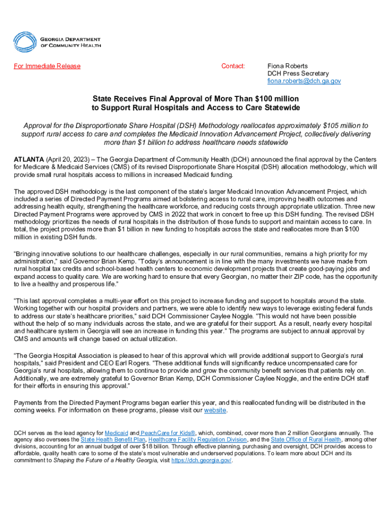 Fill out your press releasesgeorgia department of online with pdfFiller!