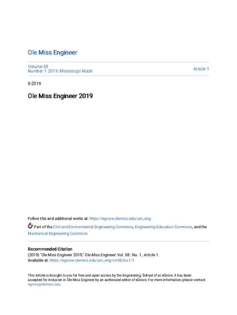 Number 1 2019: Mississippi MadeArticle 152019Ole Miss Engineer 2019Follow this and additional works at: https://egrove.olemiss.edu/um_eng