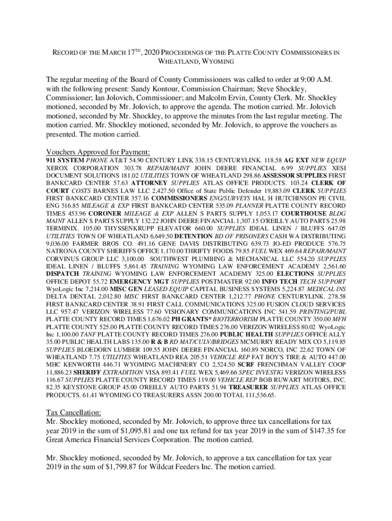 RECORD OF THE MARCH 17TH, 2020 PROCEEDINGS OF THE PLATTE COUNTY COMMISSIONERS IN