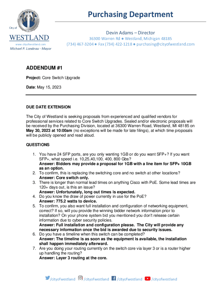(734) 4673204 Fax (734) 4221218 purchasing@cityofwestland.comwww.cityofwestland.comMichael P. Landau