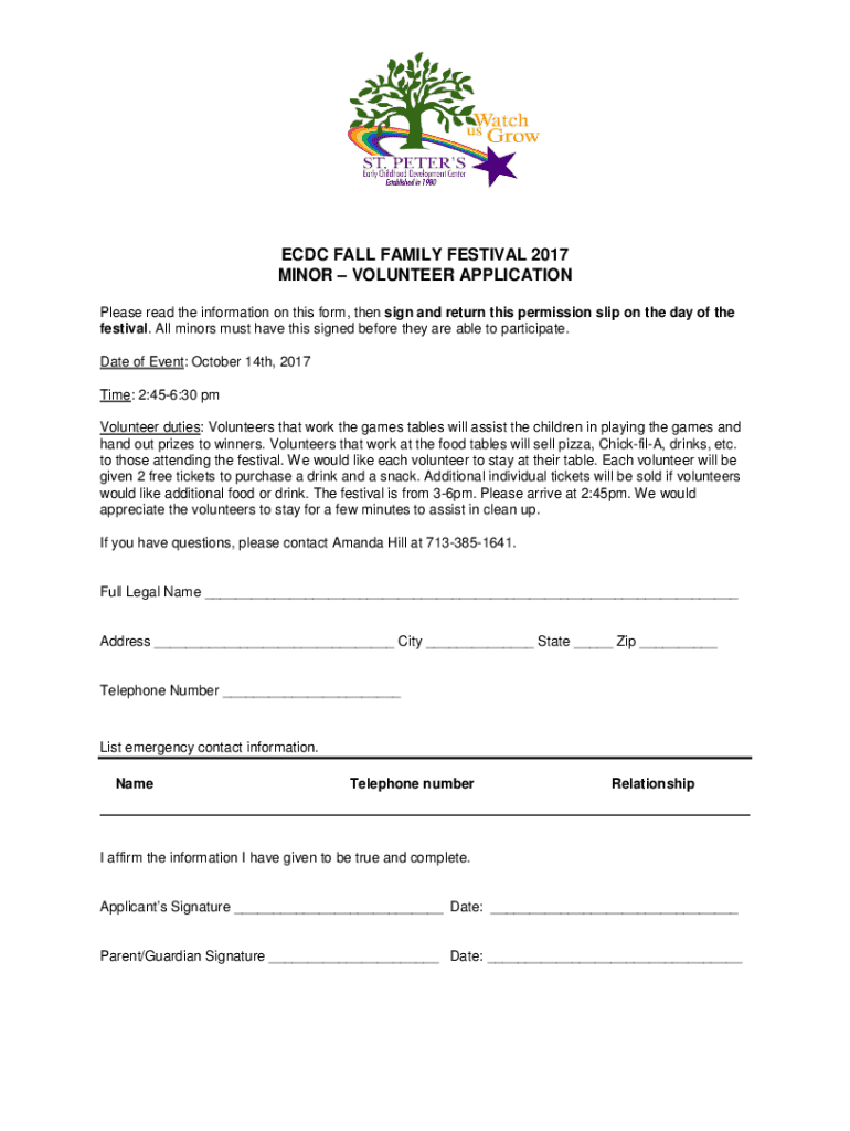 Get the free Online MINOR VOLUNTEER APPLICATION Fax Email ...