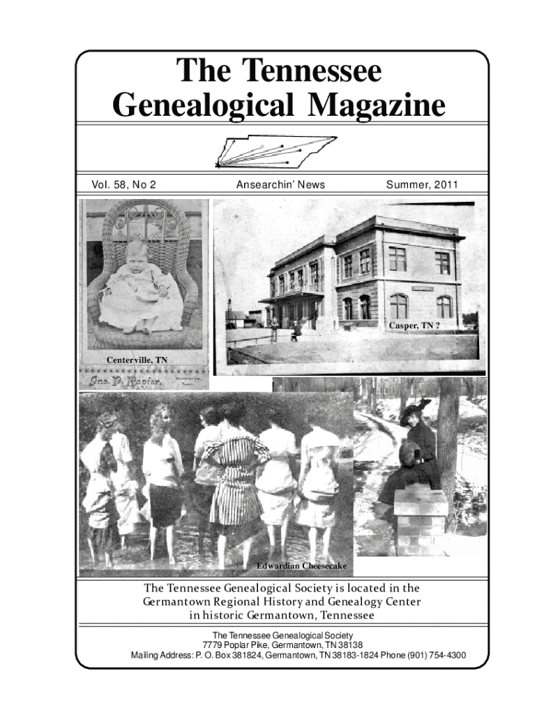 Vol. 58, No 2Ansearchin News Summer, 2011Casper, TN ? Centerville, TN Edwardian Cheesecake Tennessee Genealogical Society is located in the