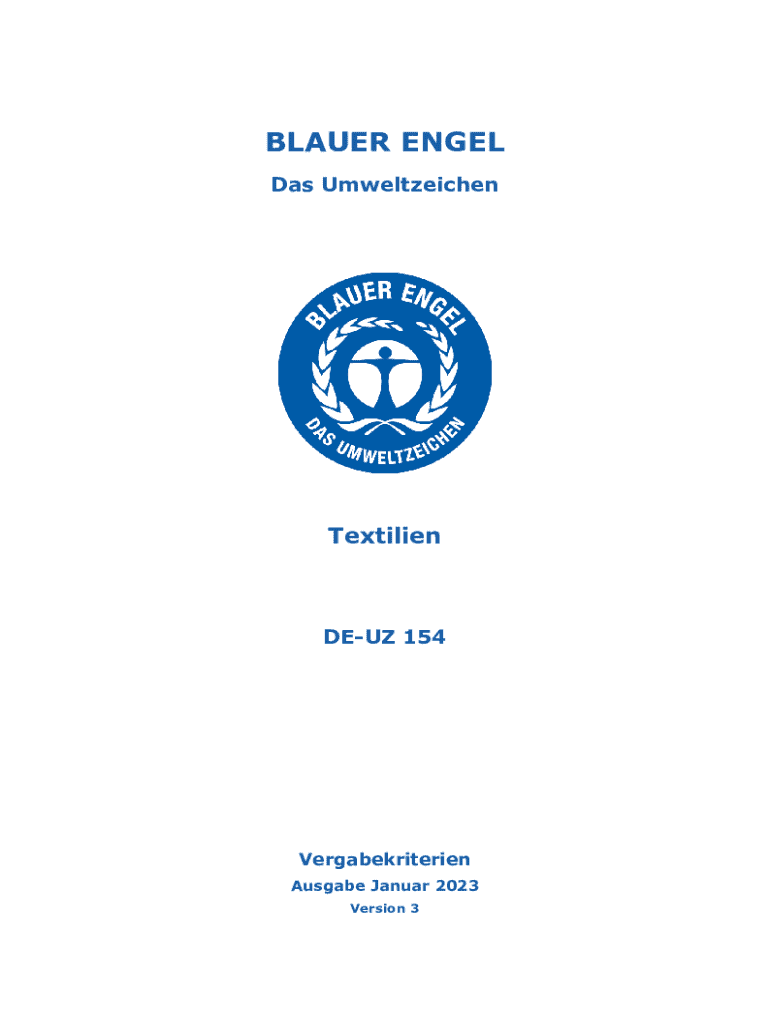 BLAUER ENGEL Das UmweltzeichenTextilienDEUZ 154Vergabekriterien Ausgabe Januar 2023 Version 3Getragen wird das Umweltzeichen durch die folgenden Institutionen:Das Bundesministerium fr Umwelt, Naturschutz,
