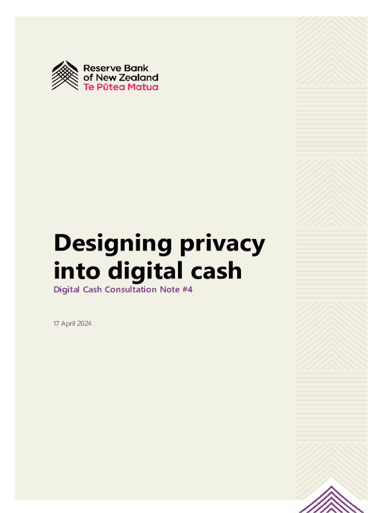 Designing privacy into digital cash Digital Cash Consultation Note #417 April 20241Disclaimer We produce a variety of publications and research about monetary policy, financial stability and related