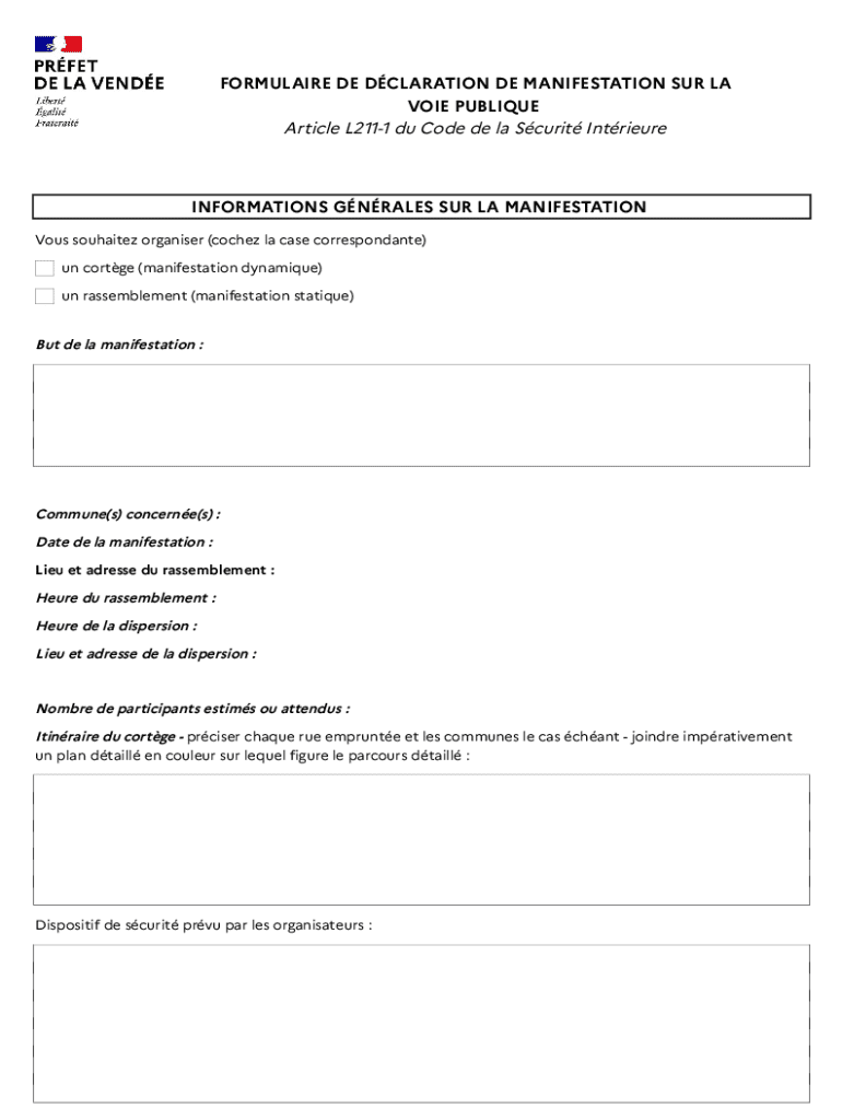 Obtenir le gratuit formulaire de dclaration de manifestation sur la