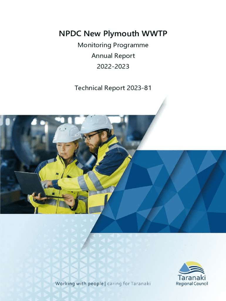 NPDC New Plymouth WWTP Monitoring Programme Annual Report 20222023 Technical Report 202381Taranaki Regional Council Private Bag 713 Stratford ISSN: 11781467 (Online) Document: 3215068 (Word) Document: