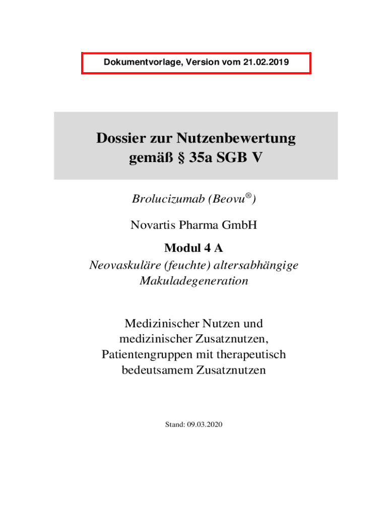 Dokumentvorlage, Version vom 21.02.2019Dossier zur Nutzenbewertung gem 35a SGB V Brolucizumab (Beovu) Novartis Pharma GmbH Modul 4 A Neovaskulre (feuchte) altersabhngige MakuladegenerationMedizinischer