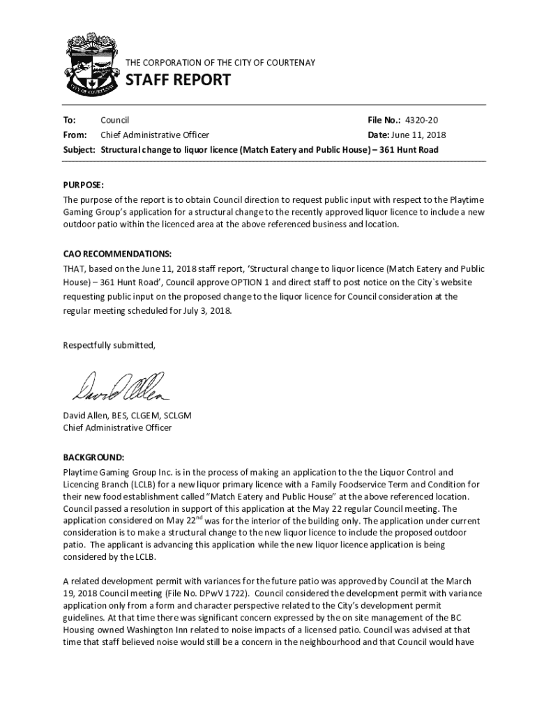 THE CORPORATION OF THE CITY OF COURTENAYSTAFF REPORT
