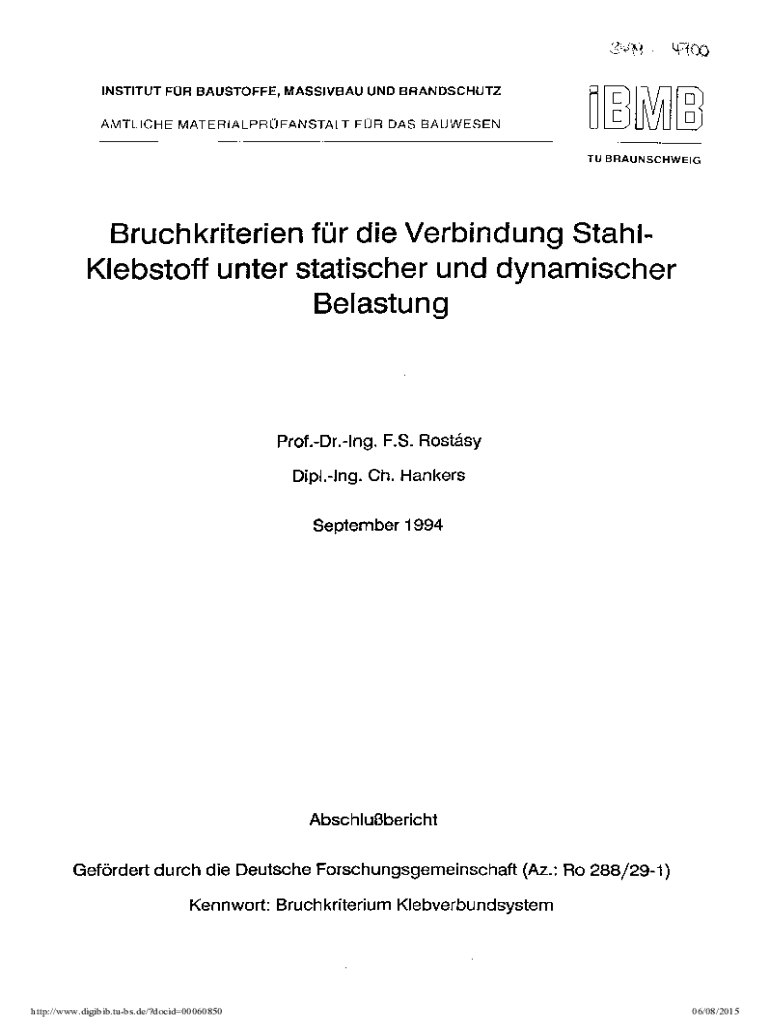 INSTITUT FR BAUSTOFFE, MASSIVBAU UND BRANDSCHUTZ AMTLICHE MATERIALPRFANSTALT FR DAS BAUWESEN TU BRAUNSCHWEIGBruchkriterien fr die Verbindung StahlKlebstoff unter statischer und dynamischer BelastungProf.Dr.lng.