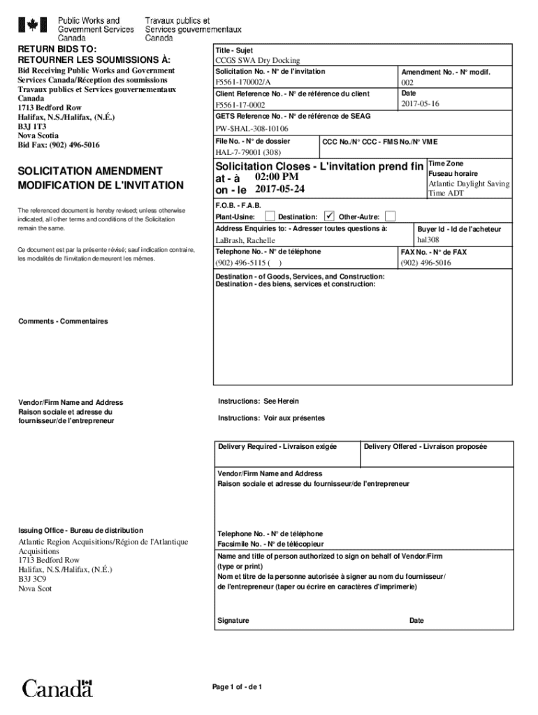 11RETURN BIDS TO: RETOURNER LES SOUMISSIONS :Title SujetBid Receiving Public Works and Government Services Canada/Rception des soumissions Travaux publics et Services gouvernementaux Canada 1713 Bedford