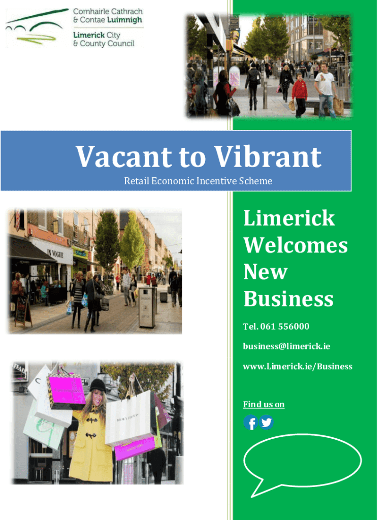 Vacant to Vibrant Retail Economic Incentive SchemeLimerick Welcomes New Business Tel. 061 556000 business@limerick.ie www.Limerick.ie/BusinessFind us onPage Page 2 of 13 | 2Limerick City & County