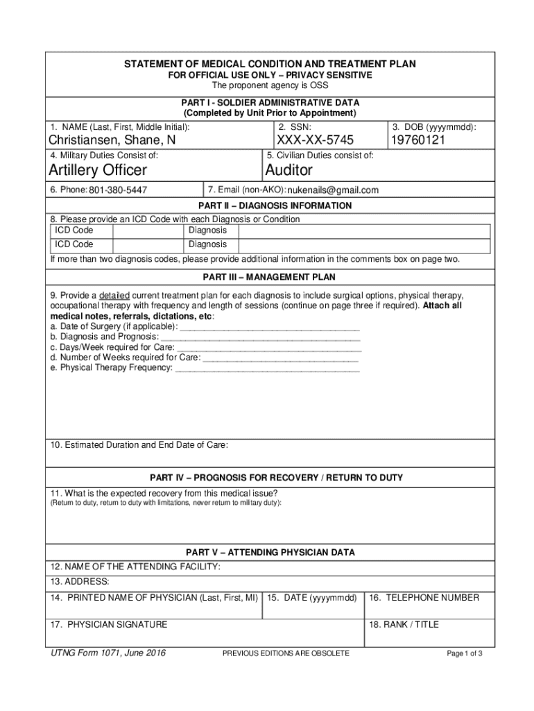 STATEMENT OF MEDICAL CONDITION AND TREATMENT PLAN