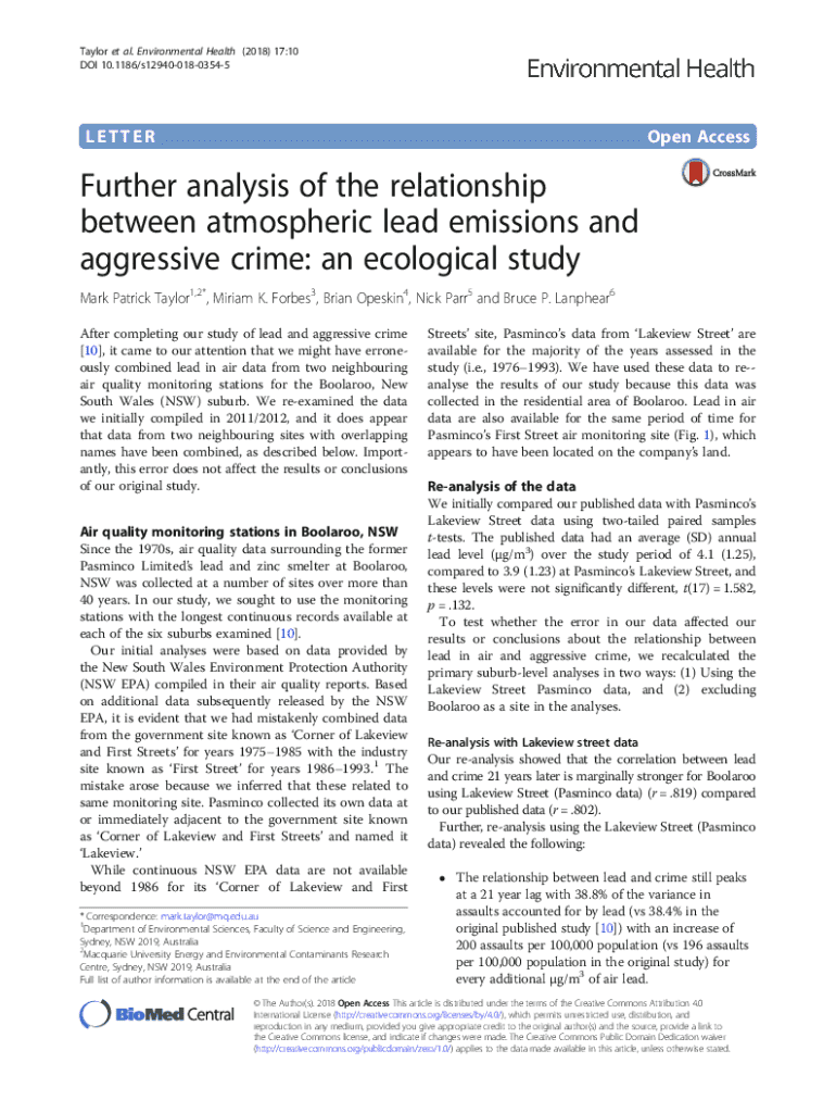 Get the free Further analysis of the relationship between atmospheric lead ...