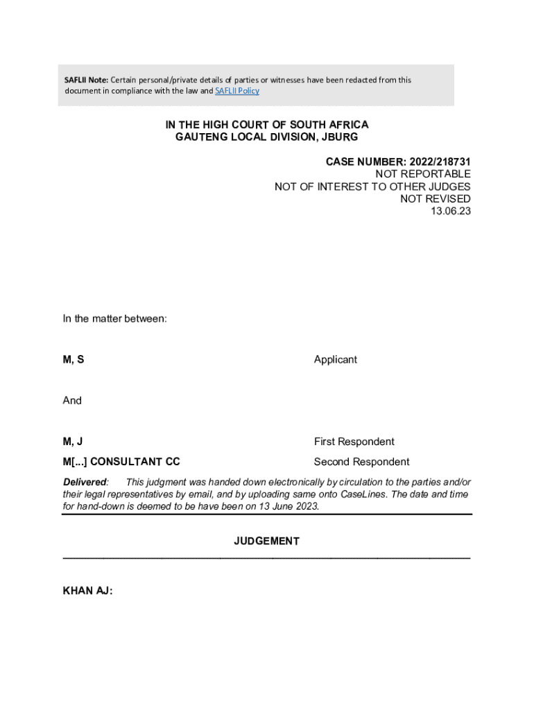 Get the free Online saflii 1 SAFLII Note: Certain personal/private ... - legalbrief co