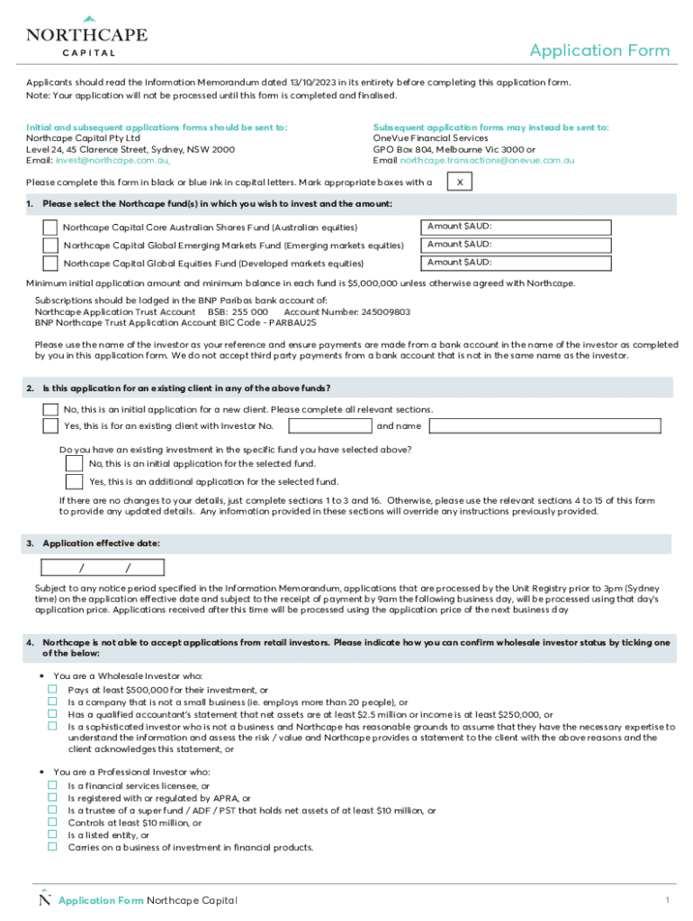 Application Form Applicants should read the Information Memorandum dated 13/10/2023 in its entirety before completing this application form. Note: Your application will not be processed until this