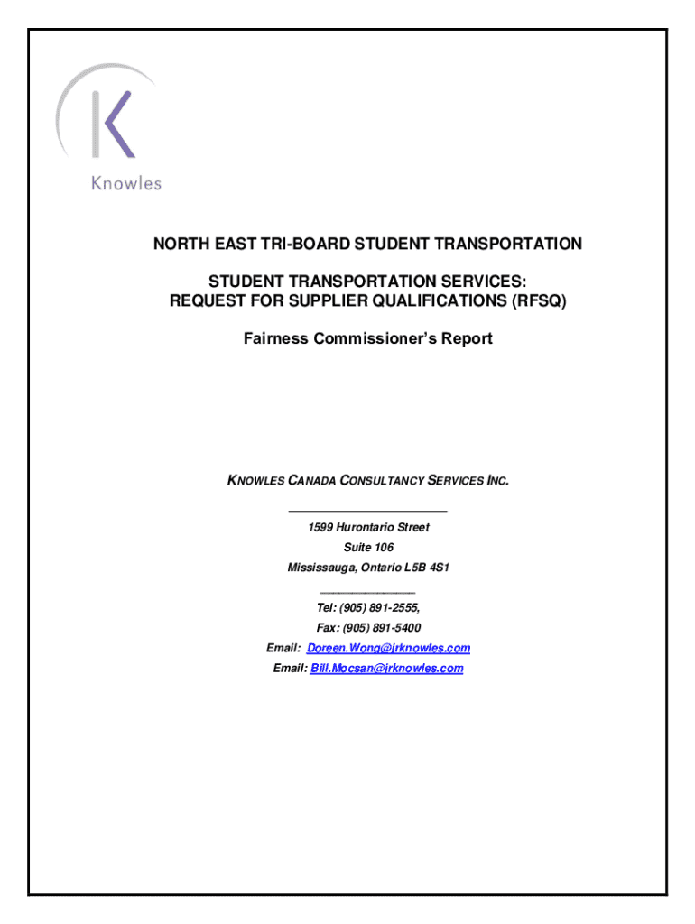 Fairness Commissioners ReportKNOWLES CANADA CONSULTANCY SERVICES INC.