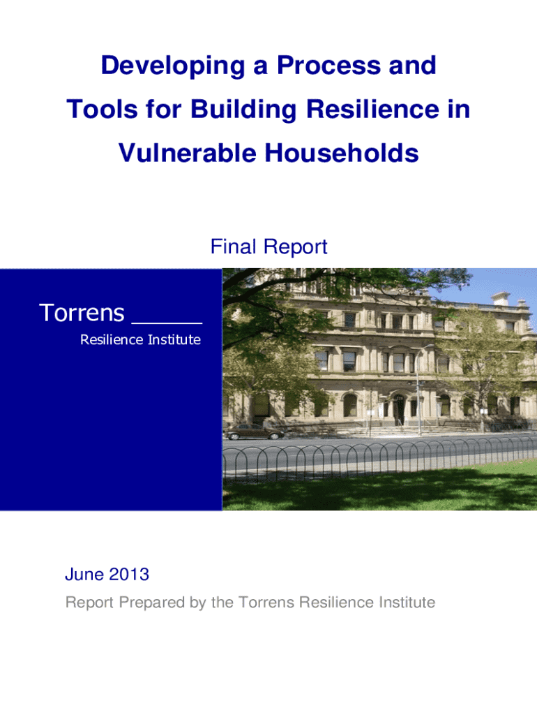 Developing a Process and Tools for Building Resilience in Vulnerable HouseholdsFinal ReportTorrens ___ Resilience InstituteJune 2013 Report Prepared by the Torrens Resilience InstitutePROJECT TEAM