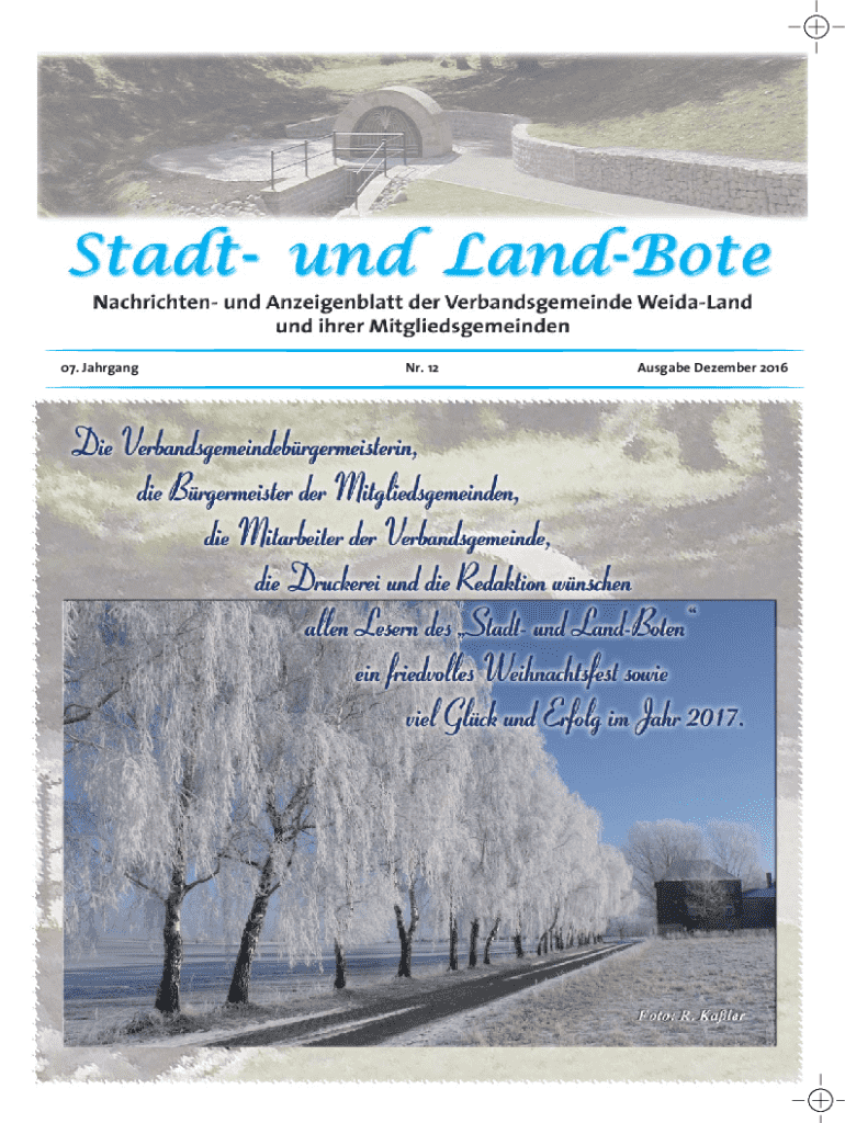 07. JahrgangNr. 12Ausgabe Dezember 201607. JahrgangSeite 2Dezember 2016AktuellesSehr geehrte Einwohnerinnen und Einwohner unserer Verbandsgemeinde, nach 22 Jahren werde ich nun zum Jahresende meine
