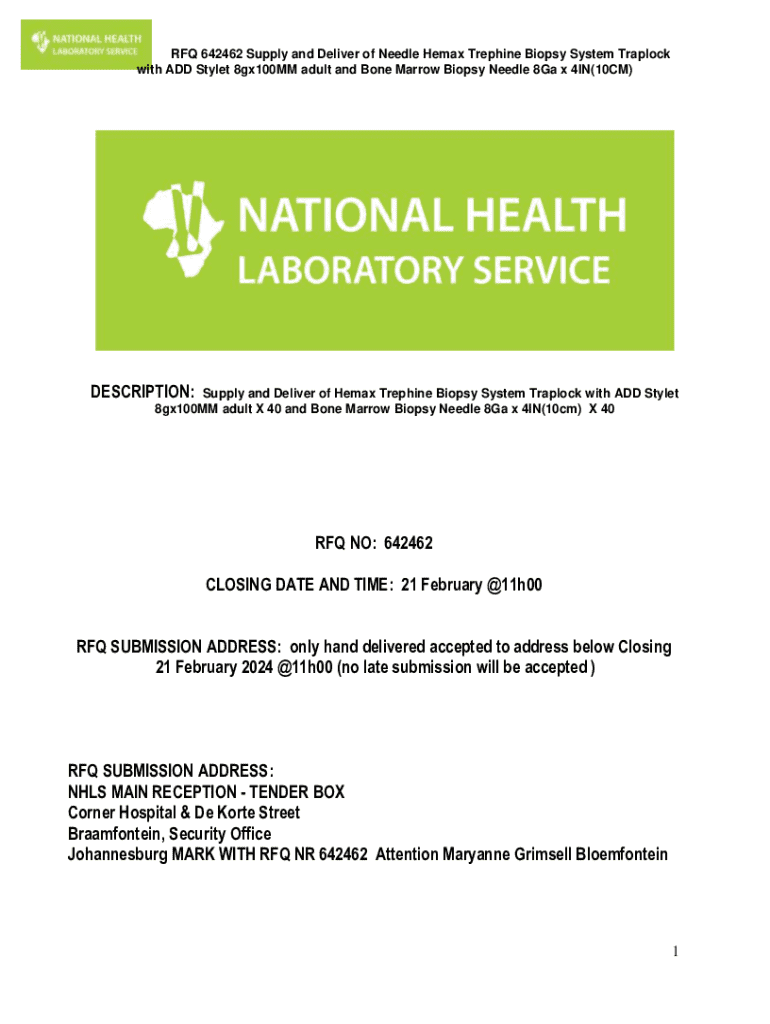 RFQ 642462 Supply and Deliver of Needle He max Treeline Biopsy System Trap lock