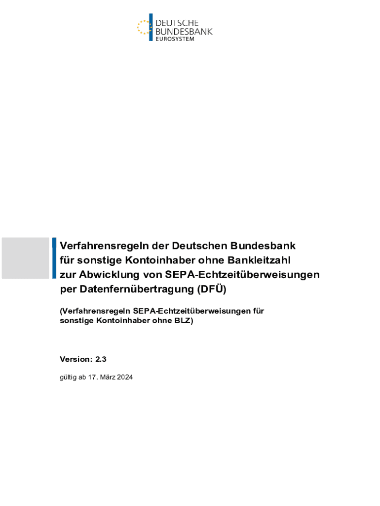 Verfahrensregeln der Deutschen Bundesbank fr sonstige Kontoinhaber ohne Bankleitzahl zur Abwicklung von SEPAEchtzeitberweisungen per Datenfernbertragung (DF) (Verfahrensregeln SEPAEchtzeitberweisungen