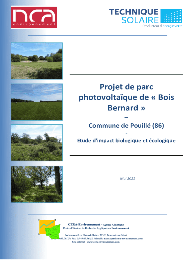 Projet de parc photovoltaque de Bois Bernard Commune de Pouill (86) Etude dimpact biologique et cologiqueMai 2021CERAEnvironnement Agence Atlantique Centre d\'Etude et de Recherche Applique en Environnement