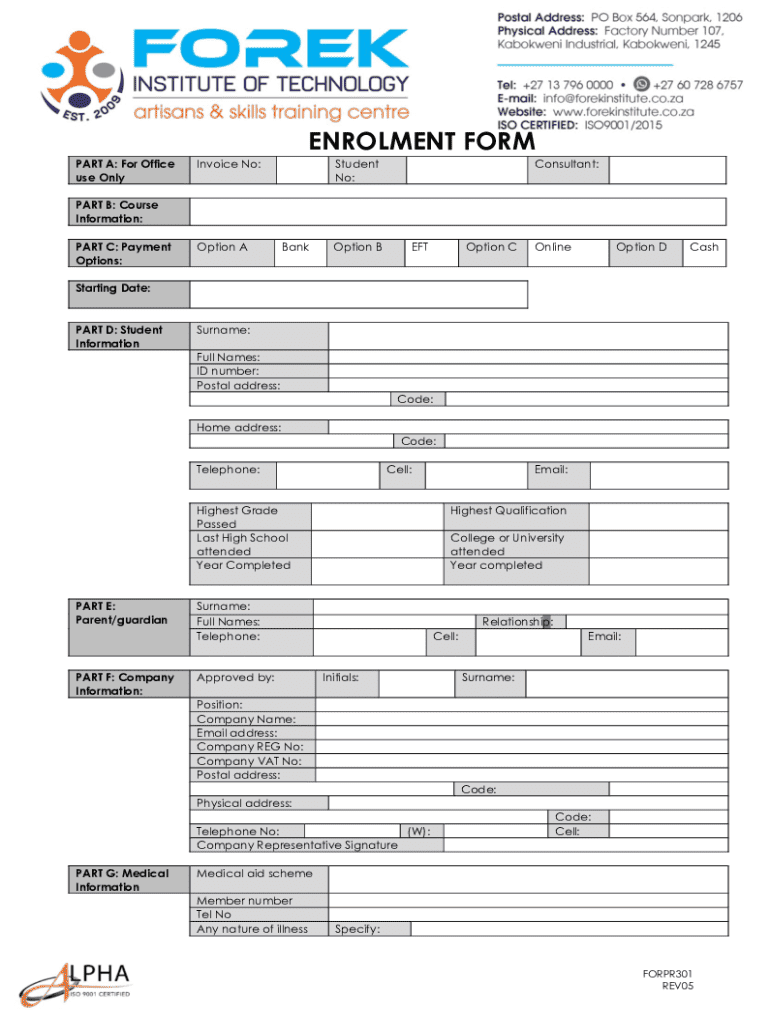 ENROLMENT FORM PART A: For Office use OnlyInvoice No:Student No:Consultant:PART B: Course Information: PART C: Payment Options:Option ABankOption BEFTOption COnlineOption DCashStarting Date:PART D: