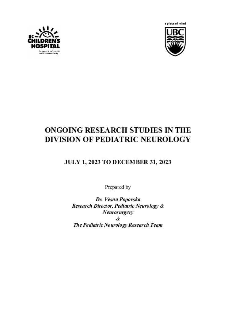 ONGOING RESEARCH STUDIES IN THE DIVISION OF PEDIATRIC NEUROLOGY JULY 1, 2023 TO DECEMBER 31, 2023Prepared by Dr. Vesna Popovska Research Director, Pediatric Neurology & Neurosurgery & The Pediatric